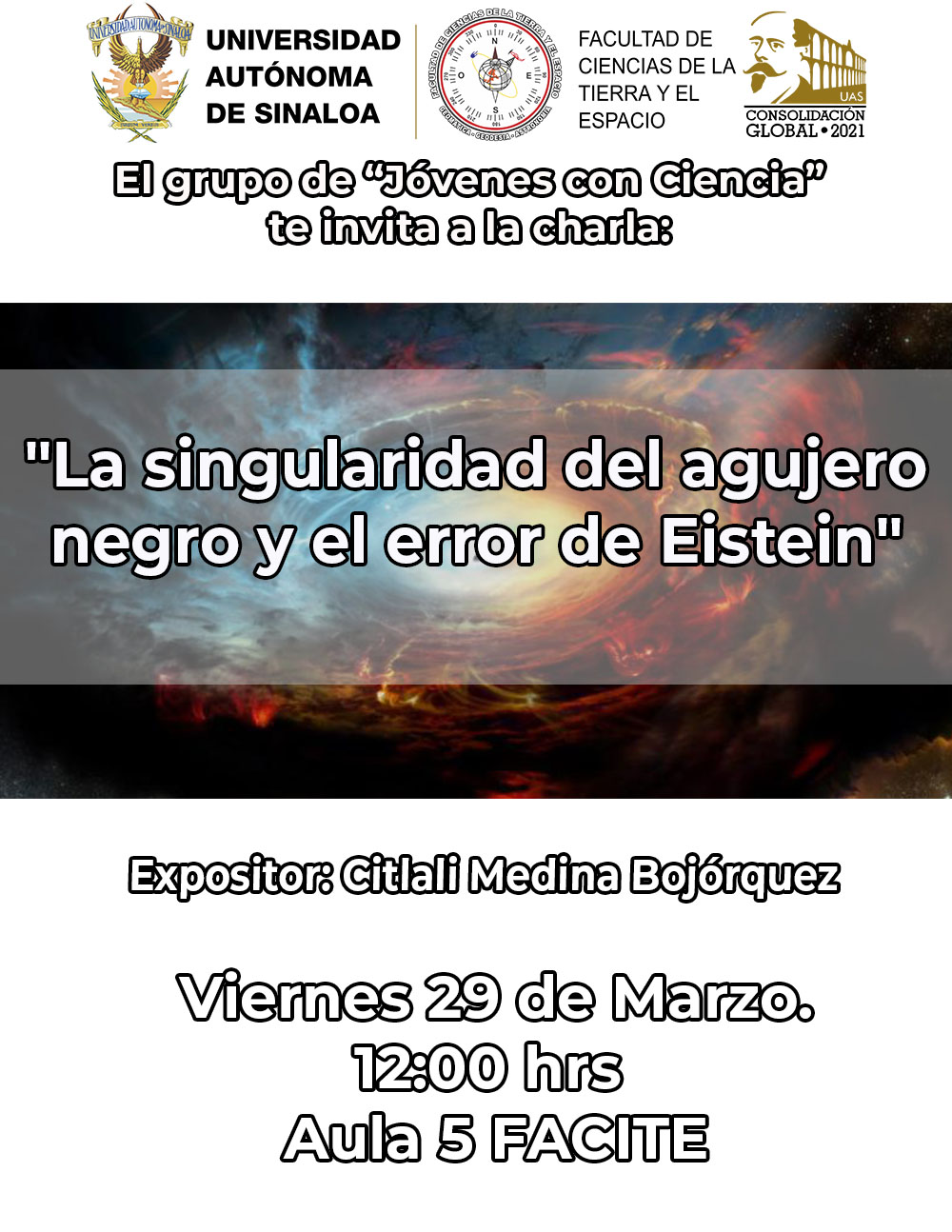 Charla Jóvenes con Ciencia: «La singularidad del agujero negro y el error de Einstein»
