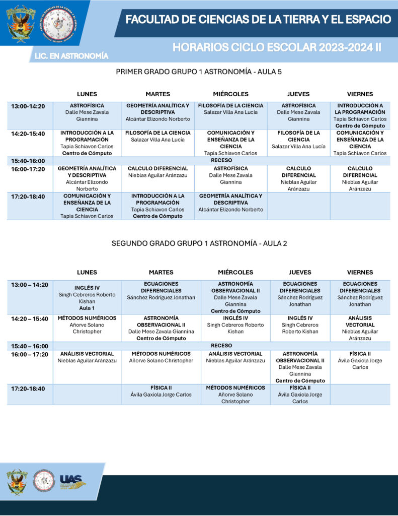 Horarios Ciclo Escolar 2023-2024 II